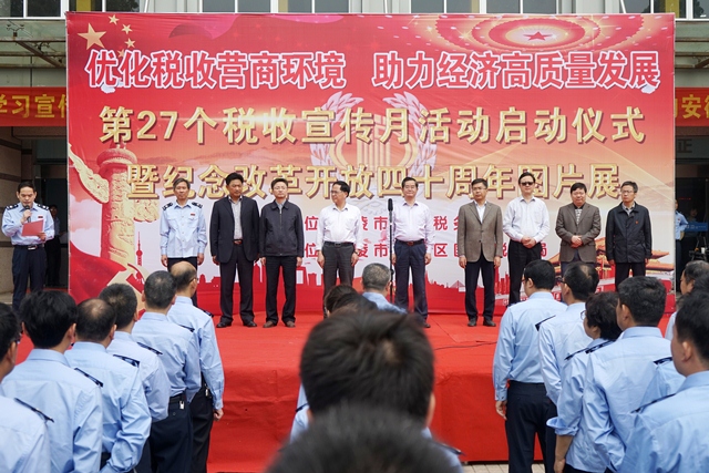 又是一年春风暖,又是一年春雨润。伴着新时代前进的步伐,第27个全国税收宣传月如约而至。大江南北,淮河两岸,从繁华都市到偏远乡村,从街头巷尾到培训课堂,全省万余名地税工作者又一次执着兑现27年不变的宣传服务约定,用辛勤和智慧播洒全社会税收意识的种子。今年税收宣传月主题是“优化税收营商环境,助力经济高质量发展”。全省各级地税机关按照省局统一部署迅速行动,聚焦主题,结合实际开展形式多样的税收宣传活动,全面展示地税部门优化税收营商环境、服务经济高质量发展、促进改善民生等方面新举措、新成效。